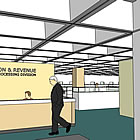 Conron & Woods, working with AI Engineers, has developed an integrated design, providing the building with entirely new systems, dramatically more efficient than the existing equipment, and reconceiving the work areas to create a more light-filled, healthy and productive atmosphere. The building's entrance and customer service area have also been redesigned, making it easier and more welcoming for taxpayers and other agency visitors.